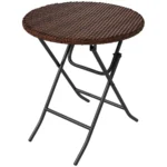 Extra table outdoors with this side table. When not in use, the folding design makes it easy to carry and store away. The woven wicker tabletop is weather-resistant. A steel base for strong support. No assembly required – use straight from the box!